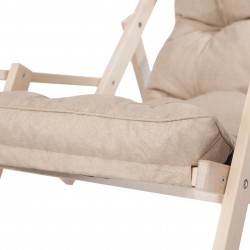 Das Gestell ist aus unlackiertem Kiefernholz gefertigt und somit umweltfreundlich. Der für die Herstellung verwendete Stoff ist langlebig. Er verfärbt sich nicht und bei den meisten Verschmutzungen genügt ein feuchtes Tuch, um sie zu entfernen. Die maximale Belastbarkeit der Liege beträgt 120 kg. Wir empfehlen, die Bolzen mindestens einmal pro Saison nachzuziehen, um die Stabilität zu erhöhen.