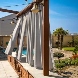 Jetzt können Sie Ihre Veranda, Ihren Pavillon, Ihren Balkon oder Ihre Terrasse in vollen Zügen genießen und einen angenehmen und abgeschiedenen Ort zum Entspannen schaffen. Unabhängig von den Wetterbedingungen behalten unsere Gartenvorhänge ihren Charme und ihre Funktionalität und geben Ihnen ein Gefühl von Luxus und Komfort im Freien.
