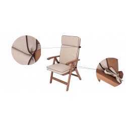 Das Kissen passt zu den meisten auf dem Markt erhältlichen Modellen von Sesseln mit hoher Rückenlehne, Stühlen und Liegesesseln. Es wurde mit größter Sorgfalt hergestellt. Es wird auf manuellen Maschinen genäht und gestopft. Aufgrund seiner Größe sollte das Kissen mit der Hand gewaschen werden, vorzugsweise bei 30' C. Der für die Herstellung verwendete Stoff ist langlebig. Er färbt nicht ab, und bei den meisten Verschmutzungen genügt ein feuchtes Tuch, um sie zu entfernen.