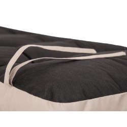 Das Kissen kann mit langen Bändern an einer Bank oder Schaukel befestigt werden.