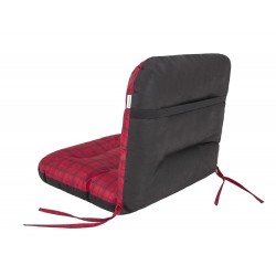 Die Rückseite des Kissens besteht aus einfarbigem Polypropylen-Vlies und ist mit einem Gummiband versehen, das zusammen mit den Schnüren zur Befestigung an einem Liegestuhl oder Stuhl dient.