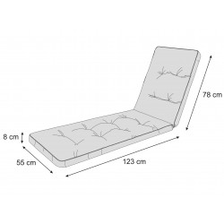 Die Breite des Kissens beträgt ca. 55 cm, die Länge der Rückenlehne: 78 cm, die Länge der Matratze und der Fußstütze beträgt 123 cm. Das Gewicht beträgt ca. 3,5 kg. Unsere Kissen passen auf die meisten langen Sonnenliegen auf dem Markt.