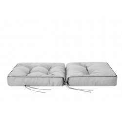 Die Rückseite des Kissens besteht aus einem einfarbigen Vliesstoff aus Polypropylen. An der Rückseite befindet sich eine Schnur, mit der die Sitzfläche an einem Liegestuhl oder Stuhl befestigt werden kann. Die Kissen sind so konstruiert, dass sie zusammengefügt werden können, um ein größeres Kissen für eine Bank zu bilden. Die Breite eines solchen Kissens ist ein Vielfaches der Breite eines einzelnen Kissens.
