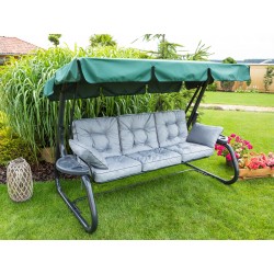 Unser Produkt passt auf die meisten Schaukeln und Gartenbänke. Es wurde mit äußerster Sorgfalt hergestellt, genäht und gestopft auf Handmaschinen. Die kleinen Kissen haben einen abnehmbaren Bezug, der es ermöglicht, sie in der Waschmaschine zu waschen. Leider muss das große Kissen aufgrund seiner Größe auf andere Weise gereinigt werden. Der verwendete Stoff ist strapazierfähig. Bei den meisten Verschmutzungen genügt ein feuchtes Tuch, um sie zu entfernen. Die runde Steppung, die einen dreidimensionalen Effekt erzeugt, trägt zum Charme dieses Modells bei.