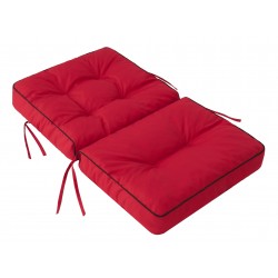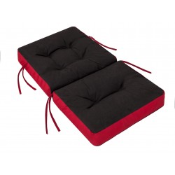 Die Rückseite des Kissens besteht aus einem einfarbigen Vliesstoff aus Polypropylen. An der Rückseite befindet sich eine Schnur, mit der die Sitzfläche an einem Liegestuhl oder Stuhl befestigt werden kann. Die Kissen sind so konstruiert, dass sie zusammengefügt werden können, um ein größeres Kissen für eine Bank zu bilden. Die Breite eines solchen Kissens ist ein Vielfaches der Breite eines einzelnen Kissens.