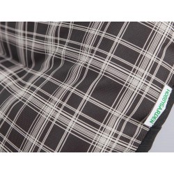 Die Rückseite des Kissens besteht aus einfarbigem Polypropylen-Vlies und ist mit einem Gummiband versehen, das zusammen mit den Schnüren zur Befestigung an einem Liegestuhl oder Stuhl dient.