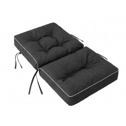 Die Rückseite des Kissens besteht aus einem einfarbigen Vliesstoff aus Polypropylen. An der Rückseite befindet sich eine Schnur, mit der die Sitzfläche an einem Liegestuhl oder Stuhl befestigt werden kann. Die Kissen sind so konstruiert, dass sie zusammengefügt werden können, um ein größeres Kissen für eine Bank zu bilden. Die Breite eines solchen Kissens ist ein Vielfaches der Breite eines einzelnen Kissens.