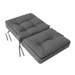 Die Rückseite des Kissens besteht aus einem einfarbigen Vliesstoff aus Polypropylen. An der Rückseite befindet sich eine Schnur, mit der die Sitzfläche an einem Liegestuhl oder Stuhl befestigt werden kann. Die Kissen sind so konstruiert, dass sie zusammengefügt werden können, um ein größeres Kissen für eine Bank zu bilden. Die Breite eines solchen Kissens ist ein Vielfaches der Breite eines einzelnen Kissens.