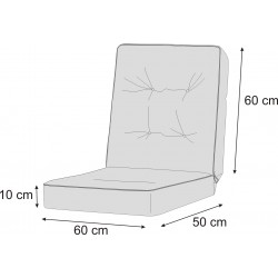 Die Rückseite des Kissens besteht aus einem einfarbigen Vliesstoff aus Polypropylen. An der Rückseite befindet sich eine Schnur, mit der die Sitzfläche an einem Liegestuhl oder Stuhl befestigt werden kann. Die Kissen sind so konstruiert, dass sie zusammengefügt werden können, um ein größeres Kissen für eine Bank zu bilden. Die Breite eines solchen Kissens ist ein Vielfaches der Breite eines einzelnen Kissens.