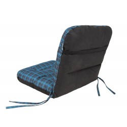 Die Rückseite des Kissens besteht aus einfarbigem Polypropylen-Vlies und ist mit einem Gummiband versehen, das zusammen mit den Schnüren zur Befestigung an einem Liegestuhl oder Stuhl dient.