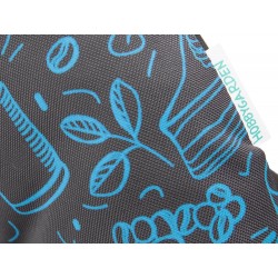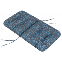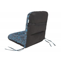 Die Rückseite des Kissens besteht aus einfarbigem Polypropylen-Vlies und ist mit einem Gummiband versehen, das zusammen mit den Schnüren zur Befestigung an einem Liegestuhl oder Stuhl dient.