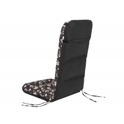 Die Rückseite des Kissens besteht aus einfarbigem Polypropylen-Vlies und ist mit einem Gummiband versehen, das zusammen mit den Schnüren zur Befestigung an einem Liegestuhl oder Stuhl dient.
