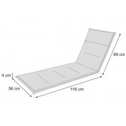 Die Breite des Kissens beträgt ca. 56 cm, die Länge der Rückenlehne: 69 cm, die Länge der Matratze und der Fußstütze beträgt 116 cm. Das Gewicht beträgt ca. 3 kg. Unsere Kissen passen auf die meisten langen Sonnenliegen auf dem Markt.