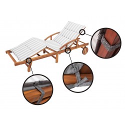 Wünschenswerter Verschluss - unsere Kissen werden mit zwei Gummibändern, Trots, befestigt. Dadurch wird sichergestellt, dass das Produkt nicht von der Sonnenbank fallen kann.