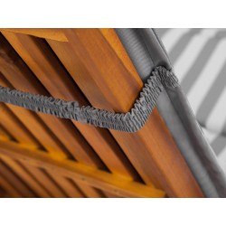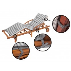 Wünschenswerter Verschluss - unsere Kissen werden mit zwei Gummibändern, Trots, befestigt. Dadurch wird sichergestellt, dass das Produkt nicht von der Sonnenbank fallen kann.
