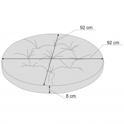 Die Breite des Kissens beträgt 92 cm, die Dicke 8 cm